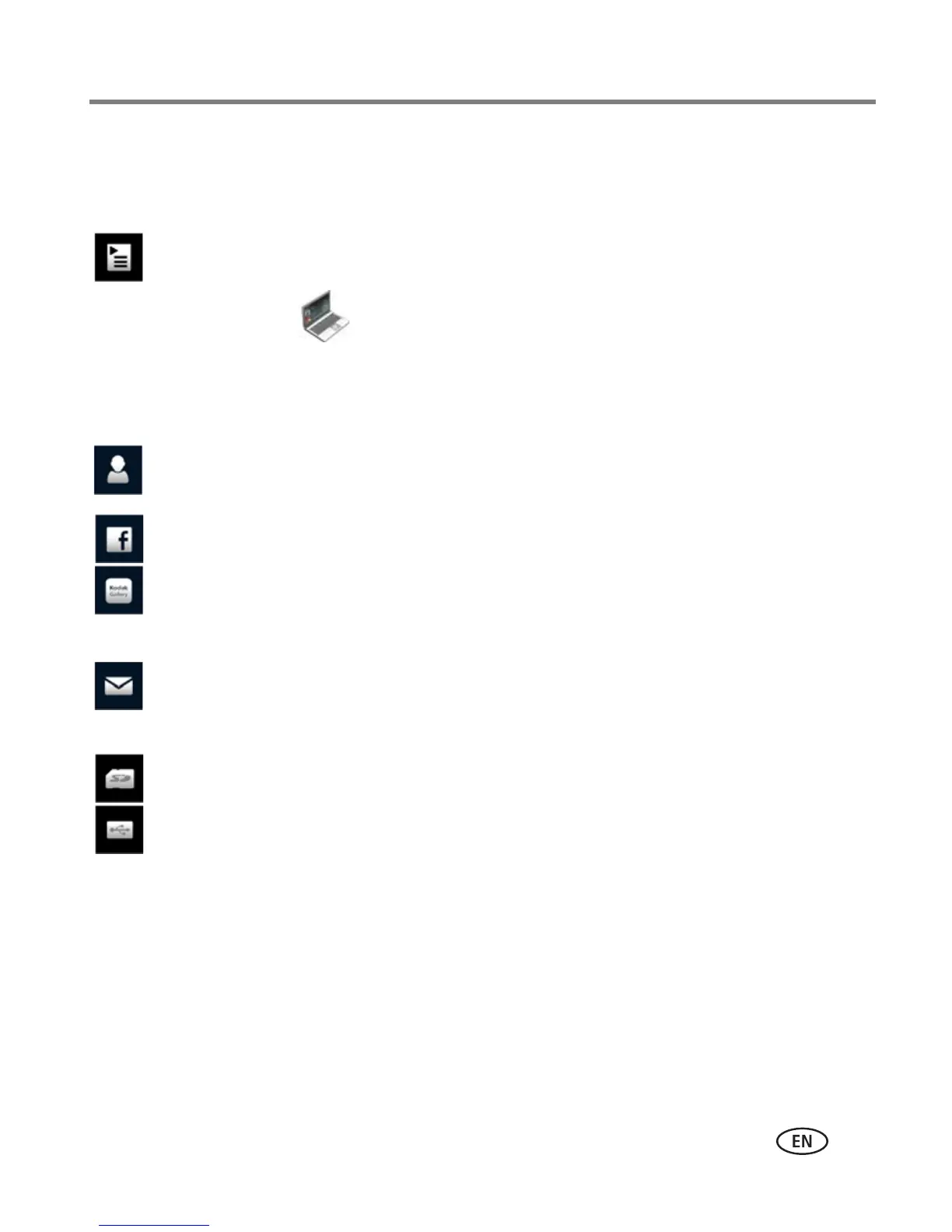 and KODAK Gallery accounts.The online service icons shown here