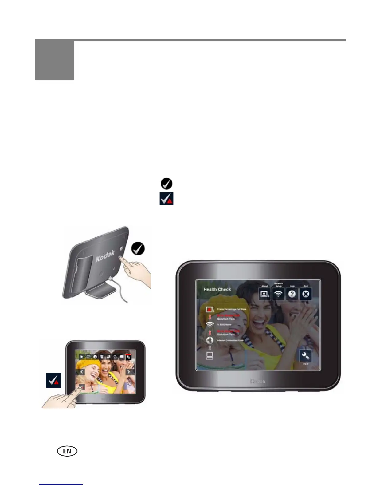 ■ Press the Health Check button on the back of the PULSE Digital Frame.
