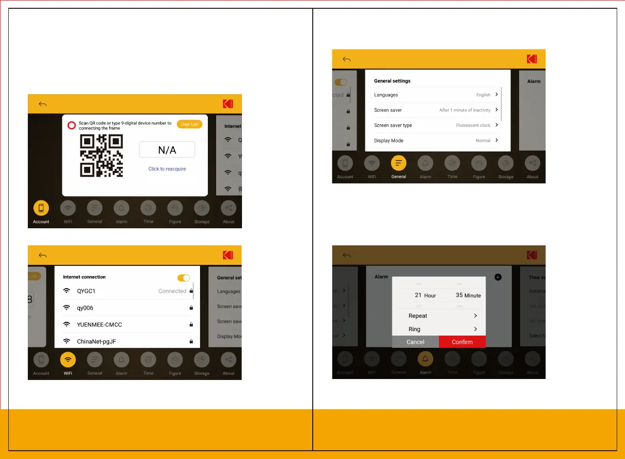 lewo, albo kliknij jedną z ikon, aby zmodyikować niektóre ustawienia: Konto / WiFi /