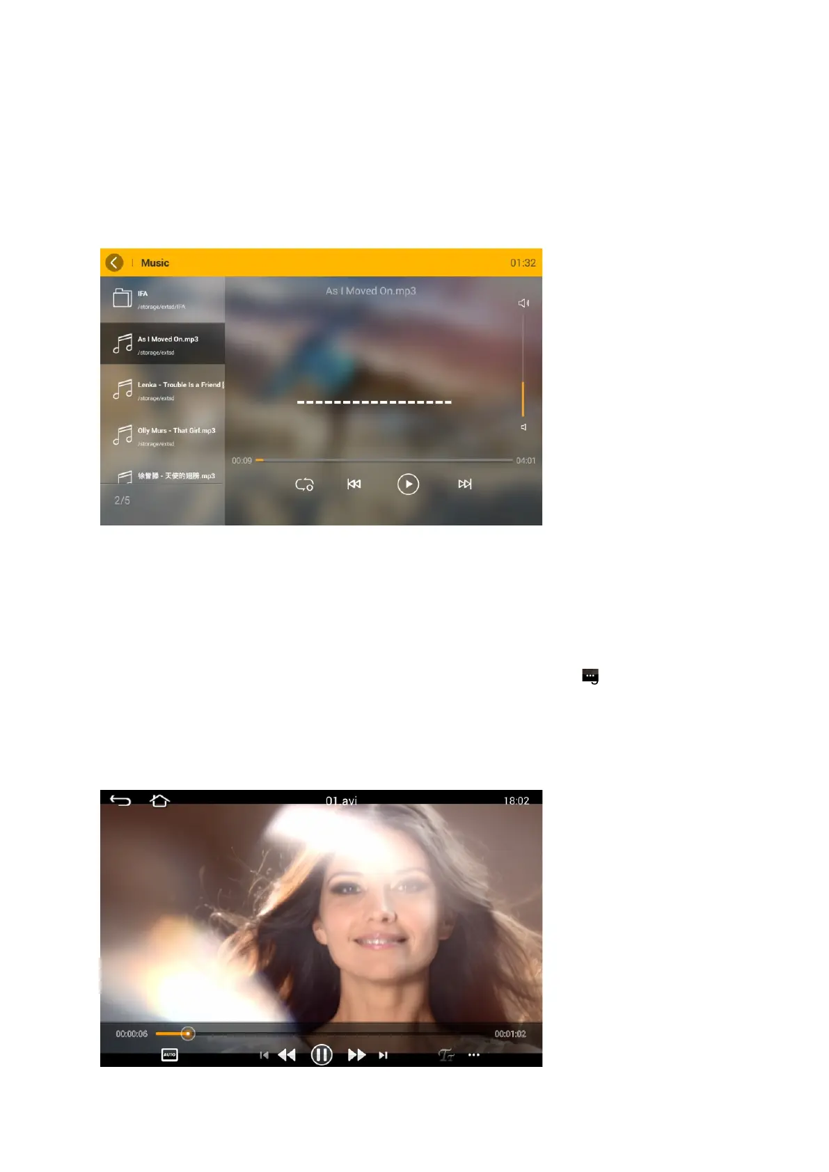 Tap the Video icon from main menu to activate the video player, which supports playing