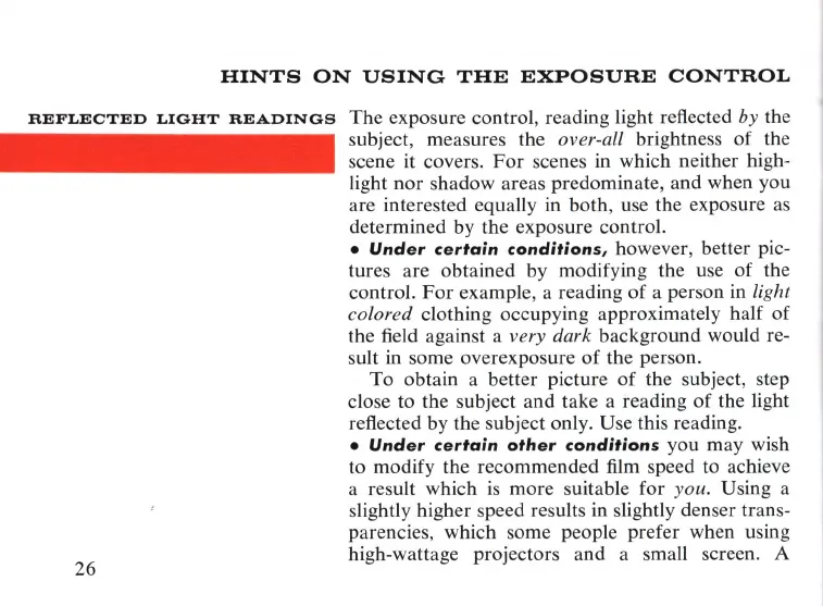 reflected by the subject only. Use this reading .