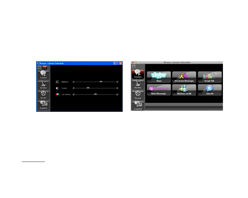 KODAK Webcams software goes into Compact View Mode. The application in