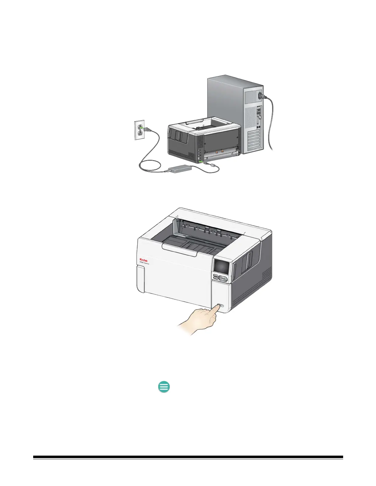 2. Turn the scanner on by pressing the power button on the front of the
