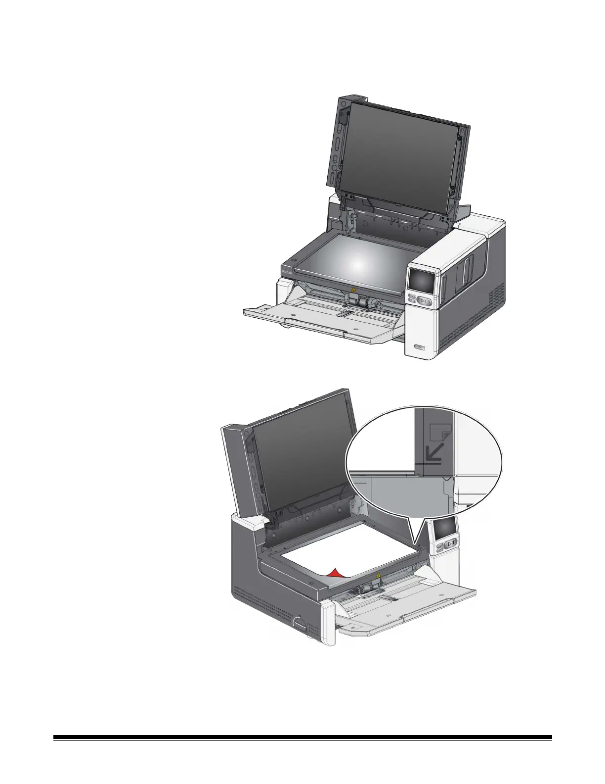 The flatbed can be used to scan exception documents, file folders, books,