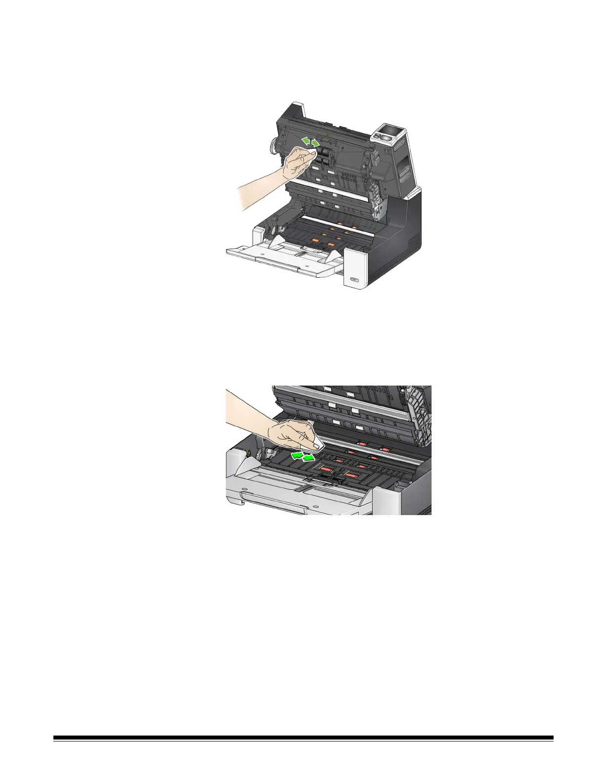 10. Clean the feed module tires by manually rotating and wiping the feed