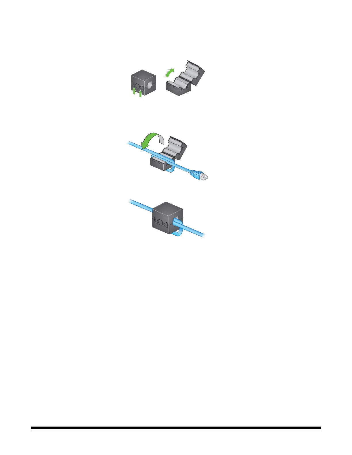 3. Close the ferrite core. Be careful not to pinch the Ethernet cable.