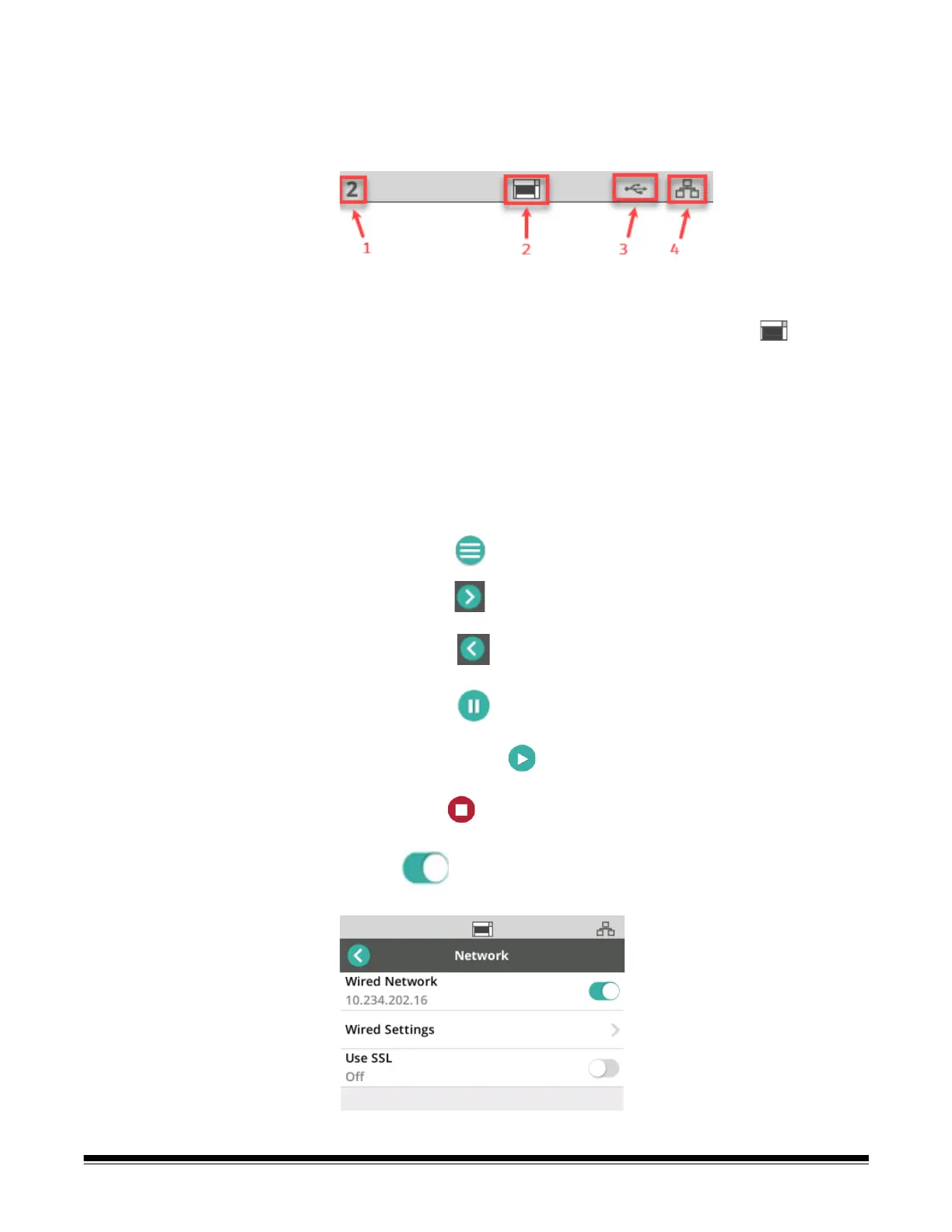 Touch screen buttons The S2000f/S3000 and Max Series scanners include a touch screen with color