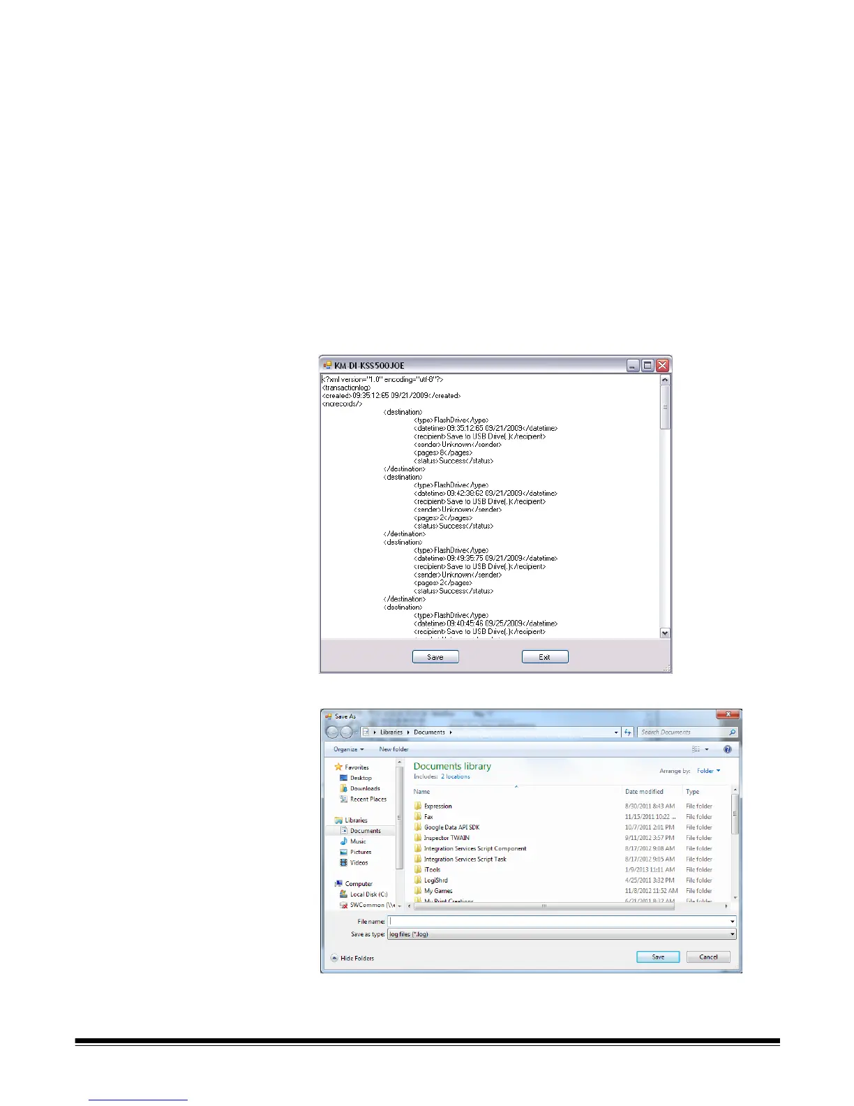 Two methods are available for saving log files: