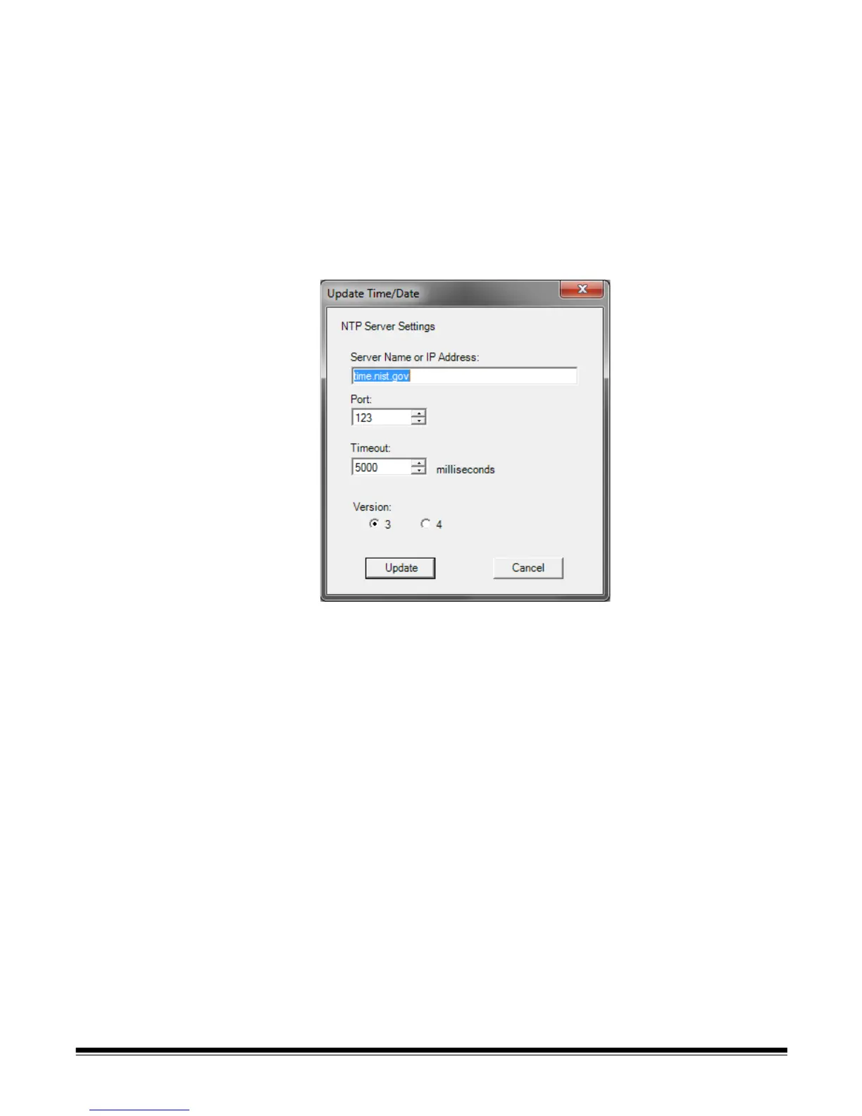 1. Select Scanner>Device>Update Time/Date. The following dialog