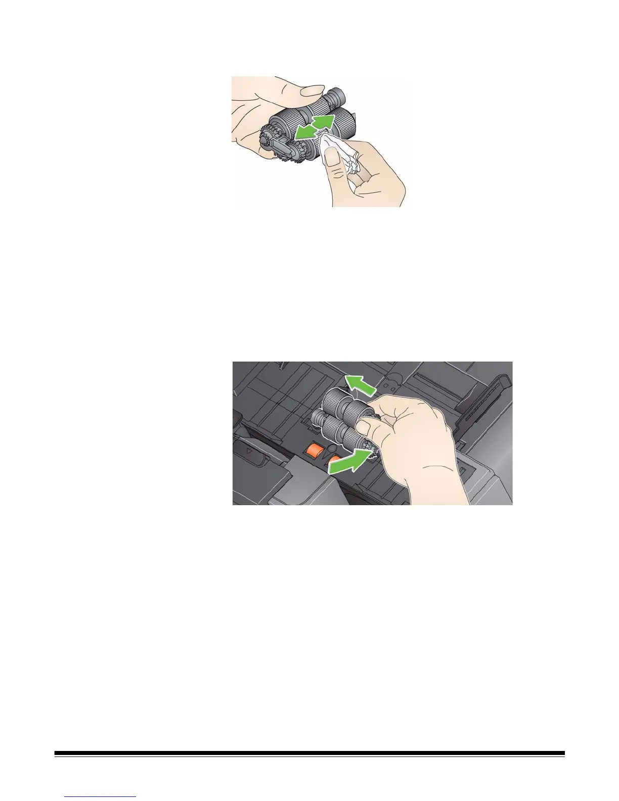 3. Manually rotate and wipe the feed module tires with a roller cleaning