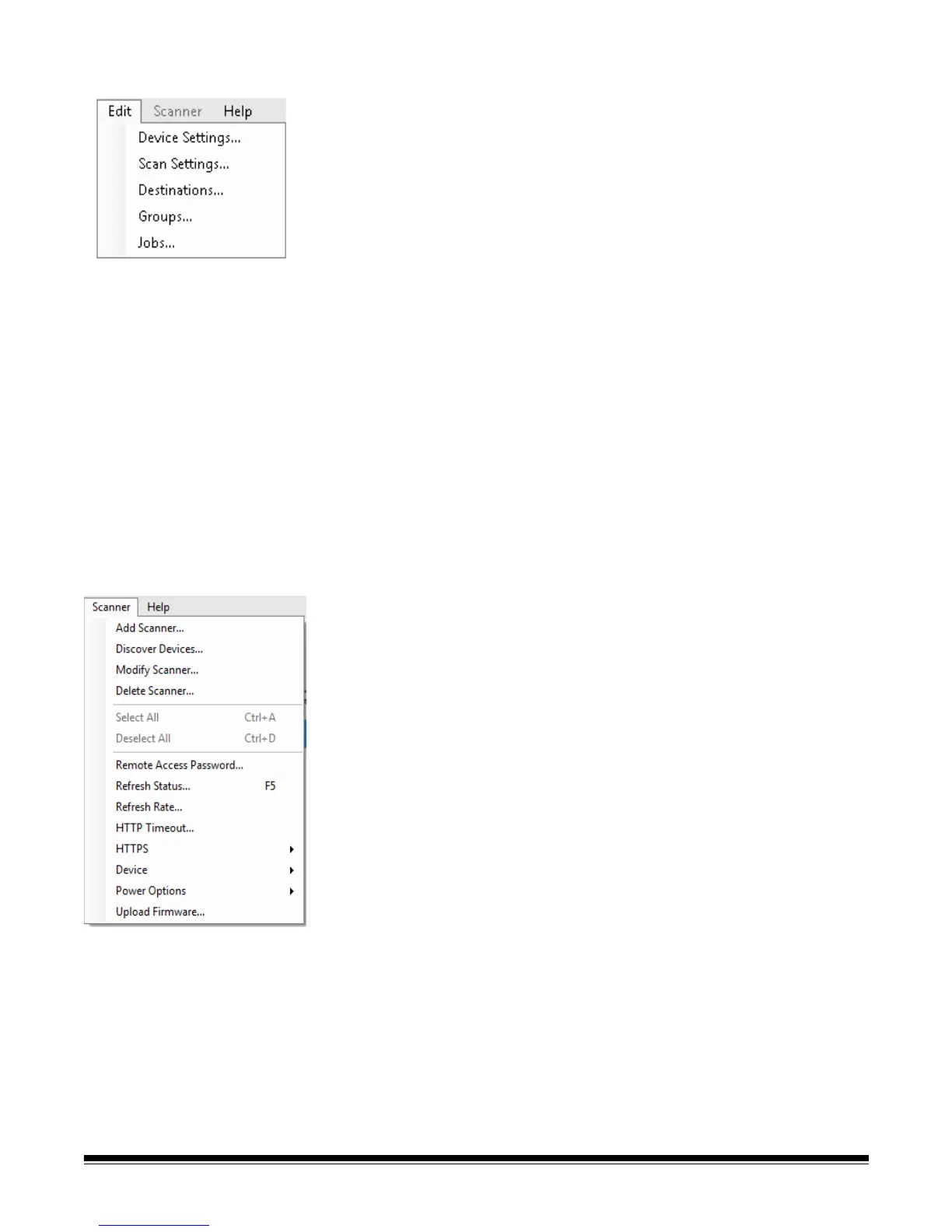 Scanner menu Following is a description of the menu options on the Scanner menu.