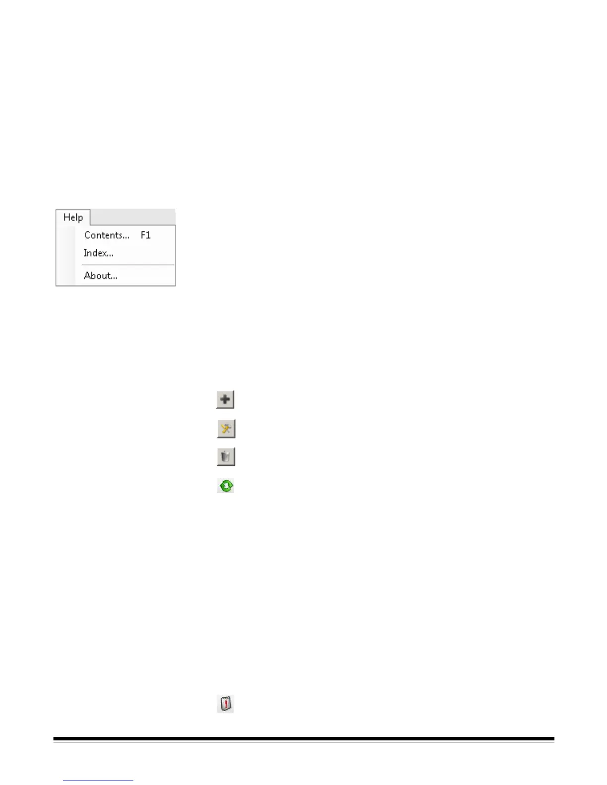 Help menu Following is a description of the menu options on the Help menu.
