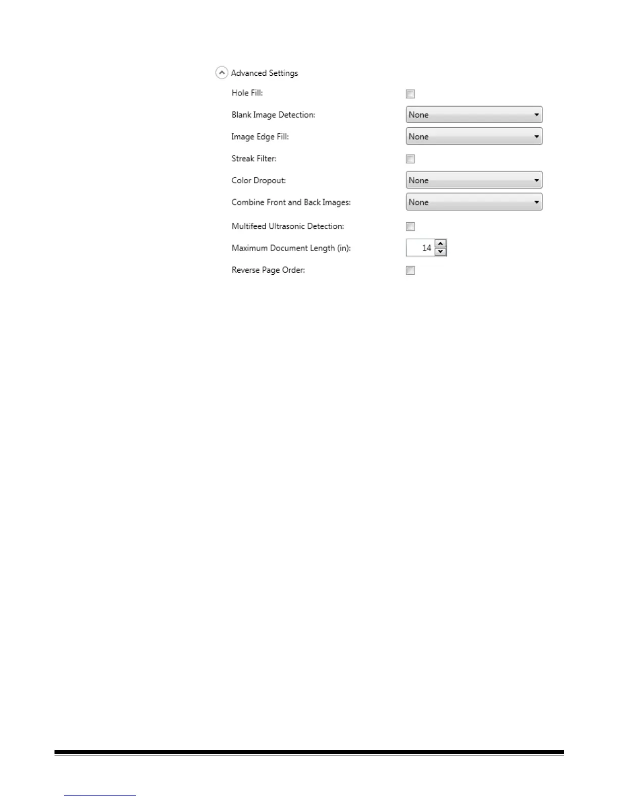 • Blank Image Detection: used to detect blank pages (e.g., the back