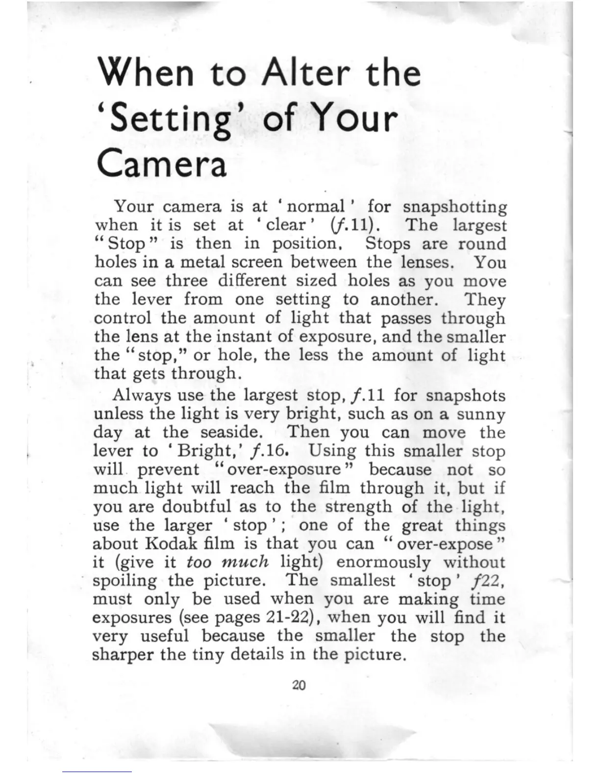 Kodak SIX-20 Brownie - When to Alter the Setting of Your Camera