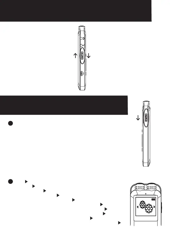 Slide down on SAVE position before turning the device on/Poussez