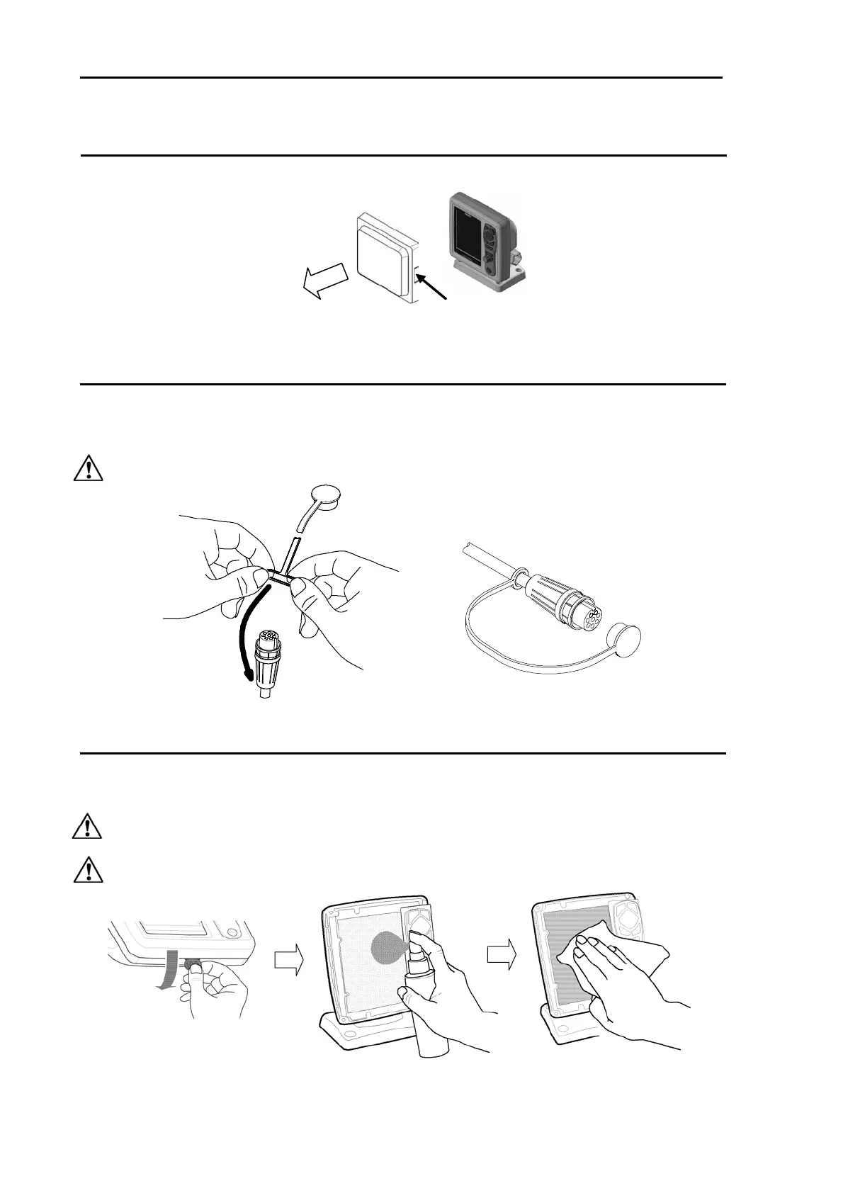 The cleaning of the display unit goes after removing the front-frame. After removing the front-frame, use