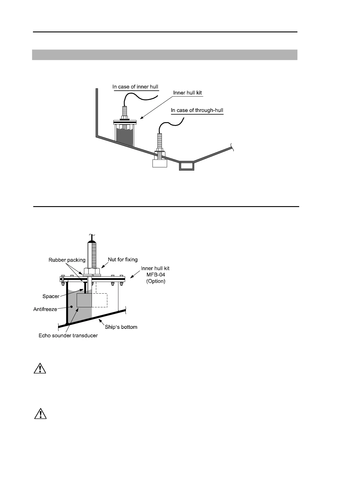 Using the optional inner-hull kit (MFB-04), install the transducer to the inner side of ship’s bottom.