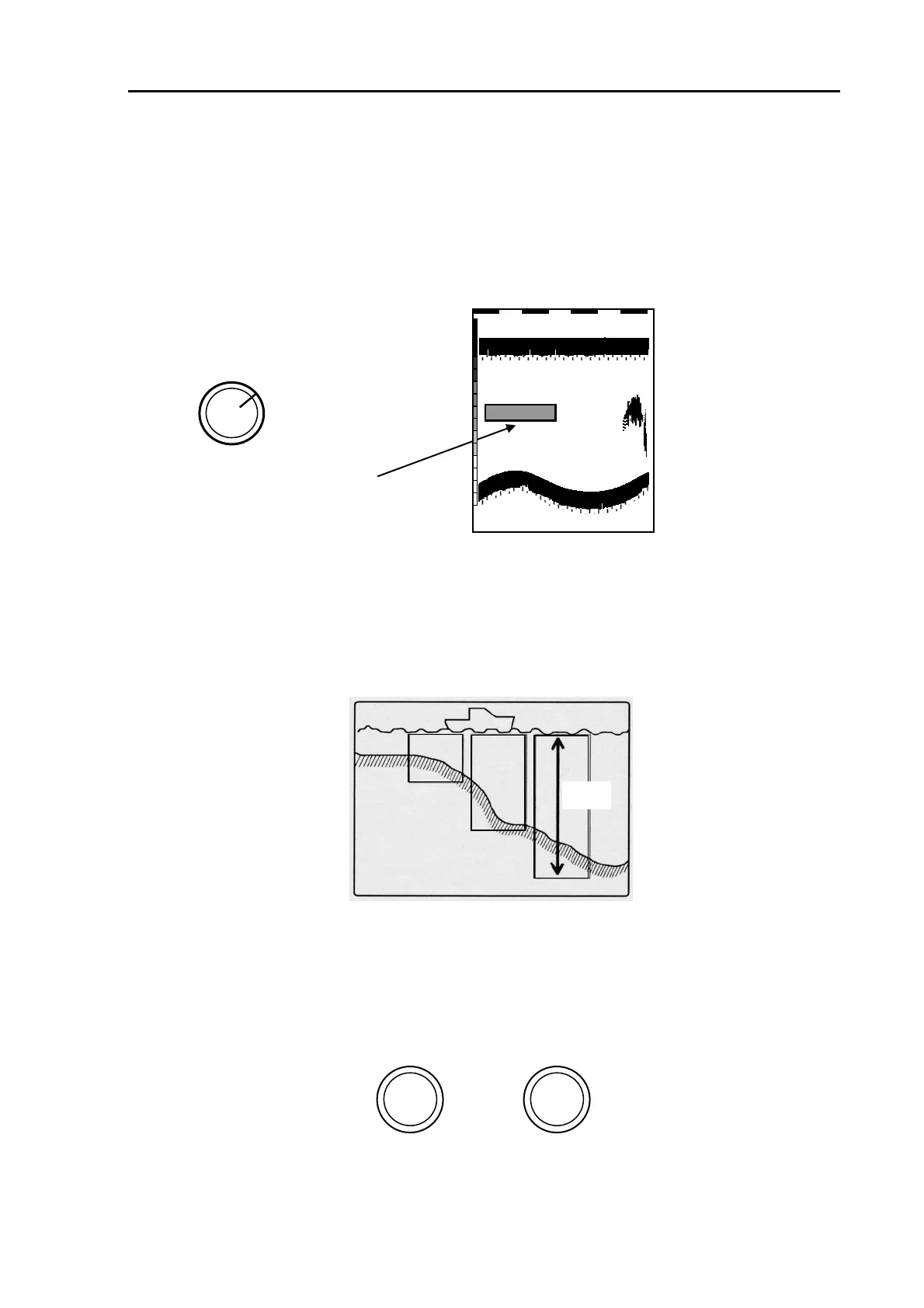 Turn the HIGH or LOW frequency gain control to make the sea bottom display turn red. This setting