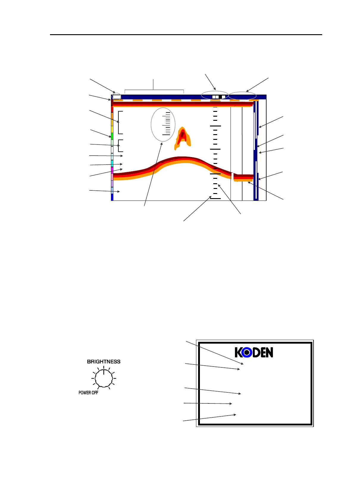 (3) In a few seconds the following initial display appears showing the sounder type name, status of