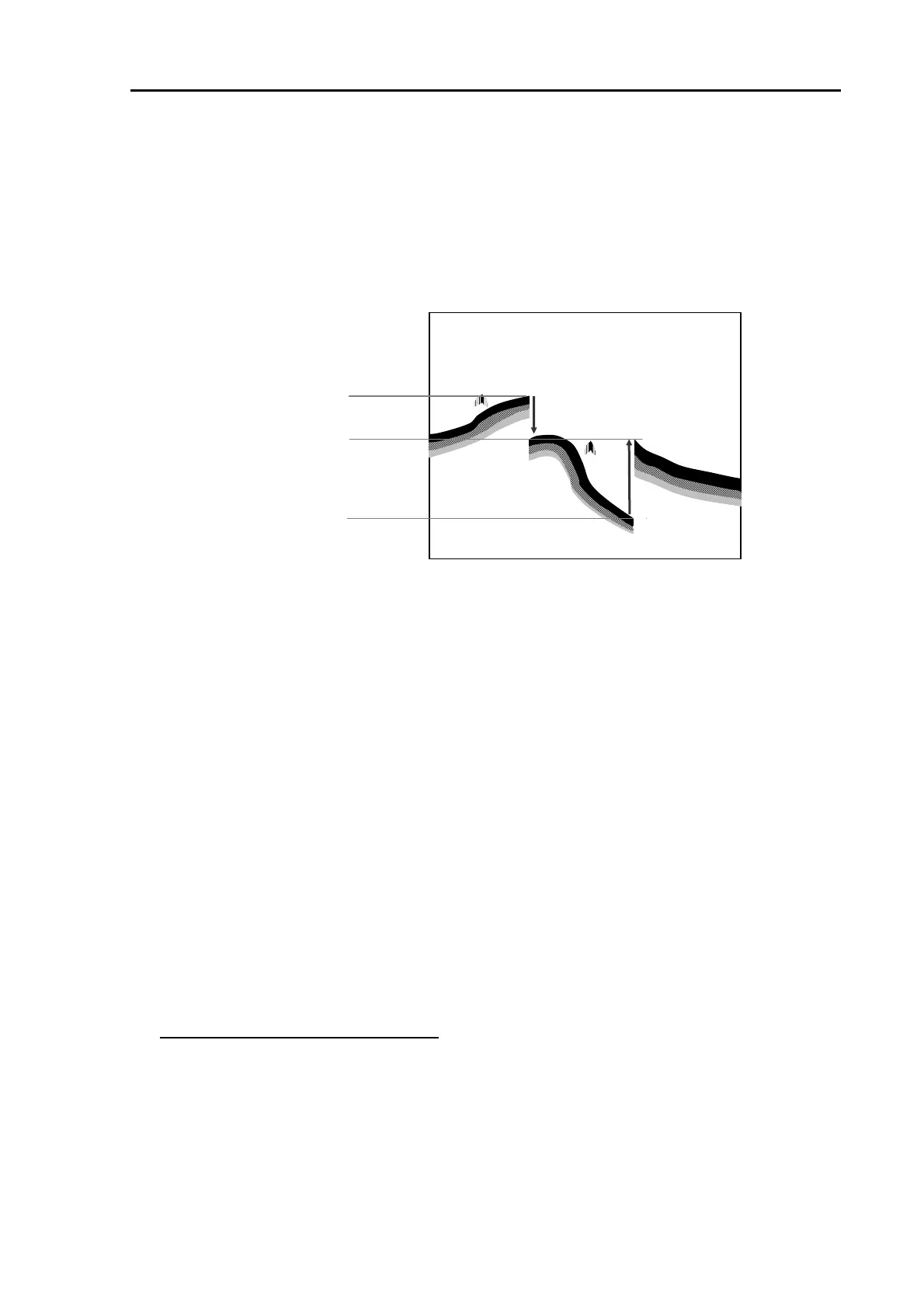 Displays a seabed echo of varying depth within the screen. When the seabed depth becomes