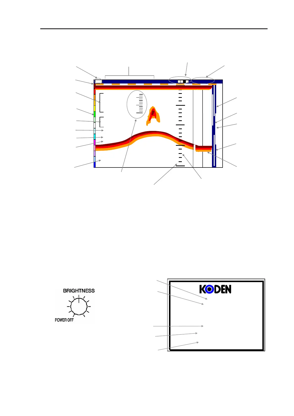 (3) In a few seconds the following initial display appears showing the sounder type name, status of