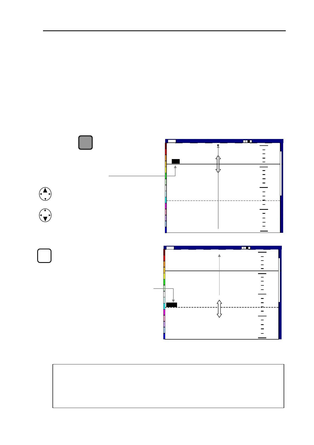 The VRM (Variable Range Marker) is a moveable depth marker shown as a line across the display,