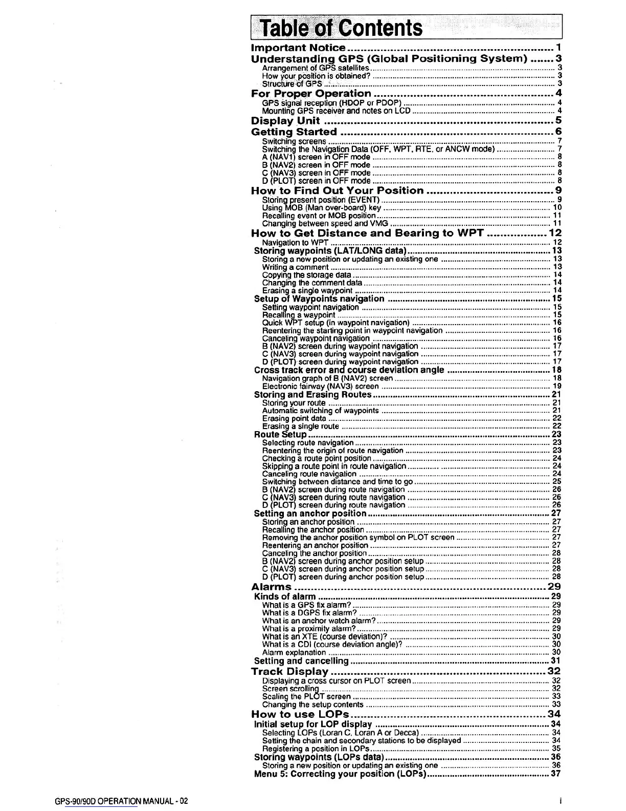 Koden KGP-913 - Table of Contents