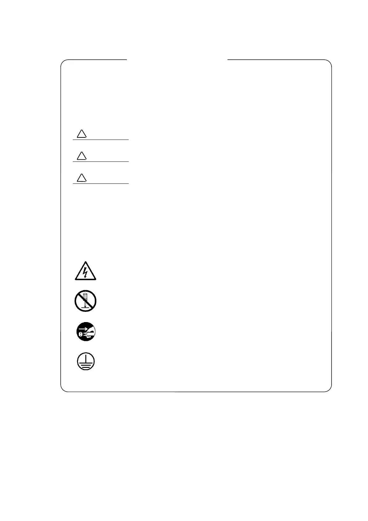 The following safety symbols are used inside or on the equipment near operation lo-