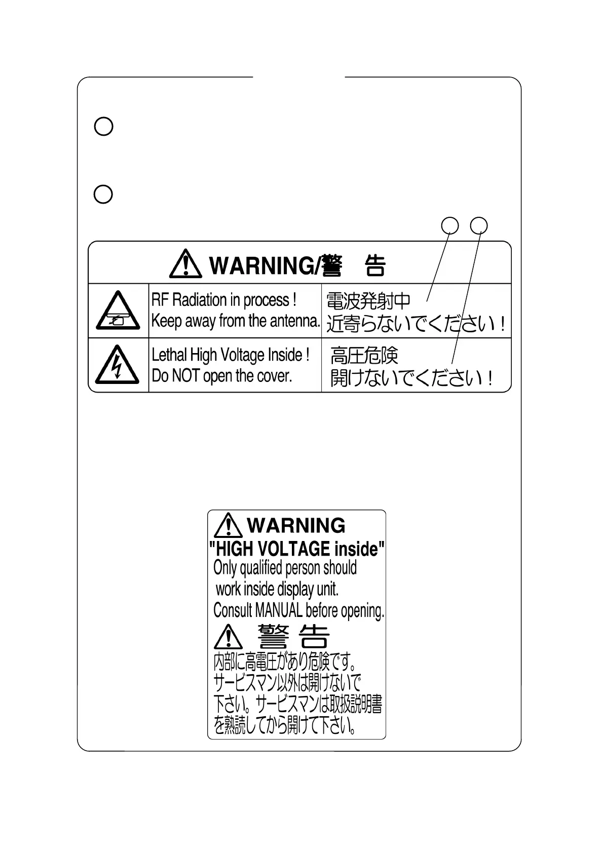 WARNING and CAUTION for Scanner Unit and Antenna;