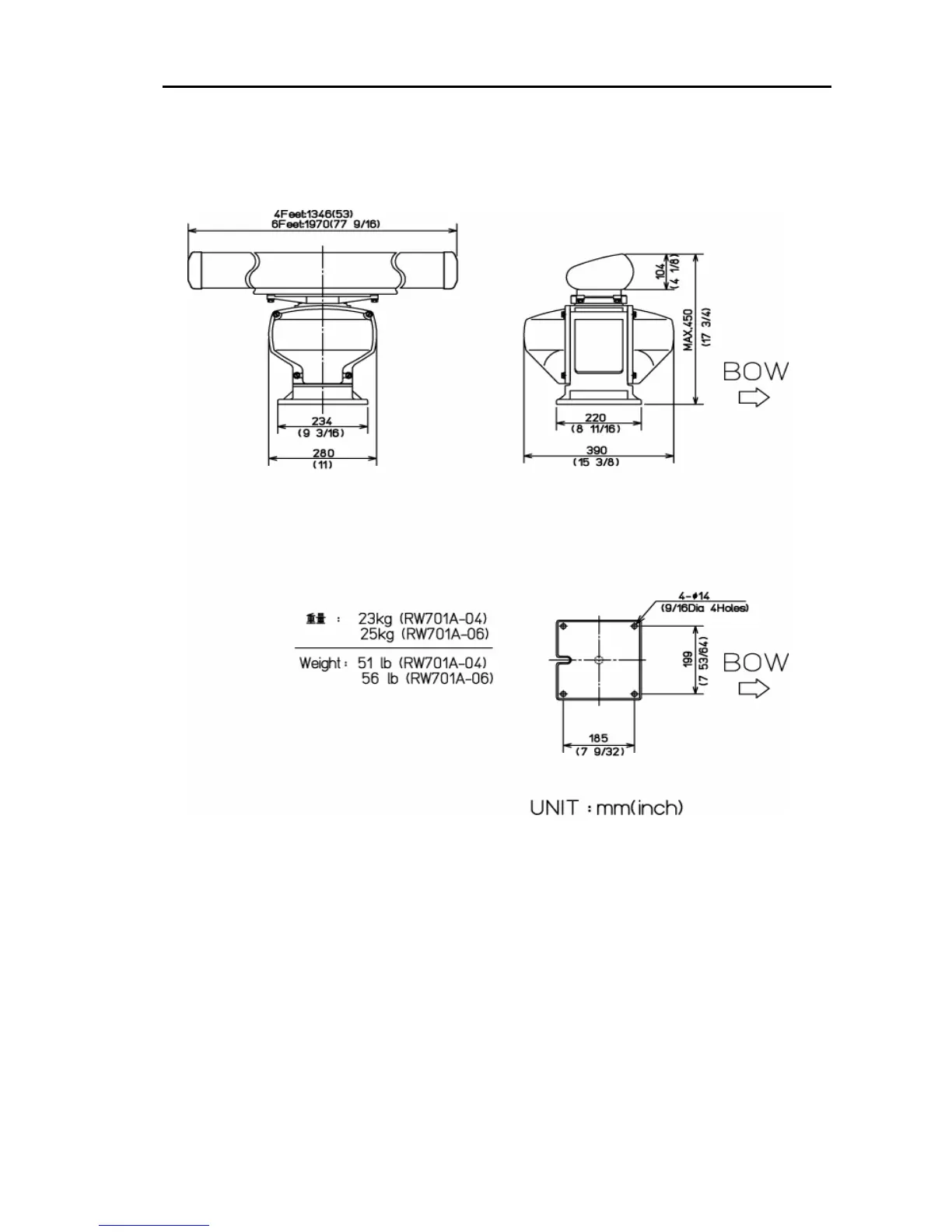 Figure 3.3 External dimensions of the Antenna unit, RB717A / RB718A