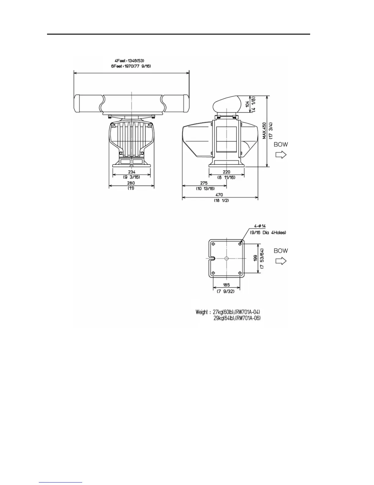 Figure 3.4 External dimensions of the Antenna unit, RB719A