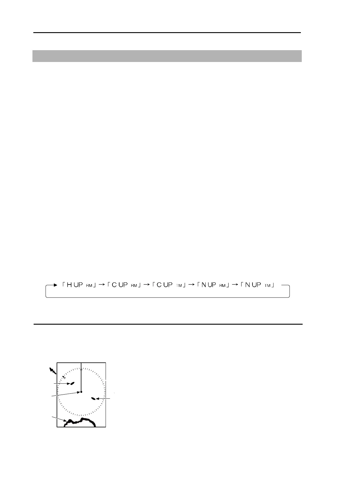 The bearing display mode is provided with 3 types: [HUP], [CUP] and [NUP].