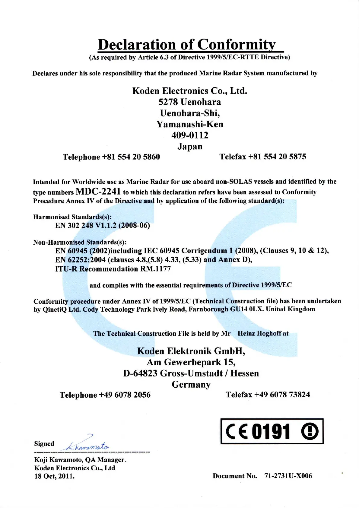 Other manuals for Koden MDC-2540