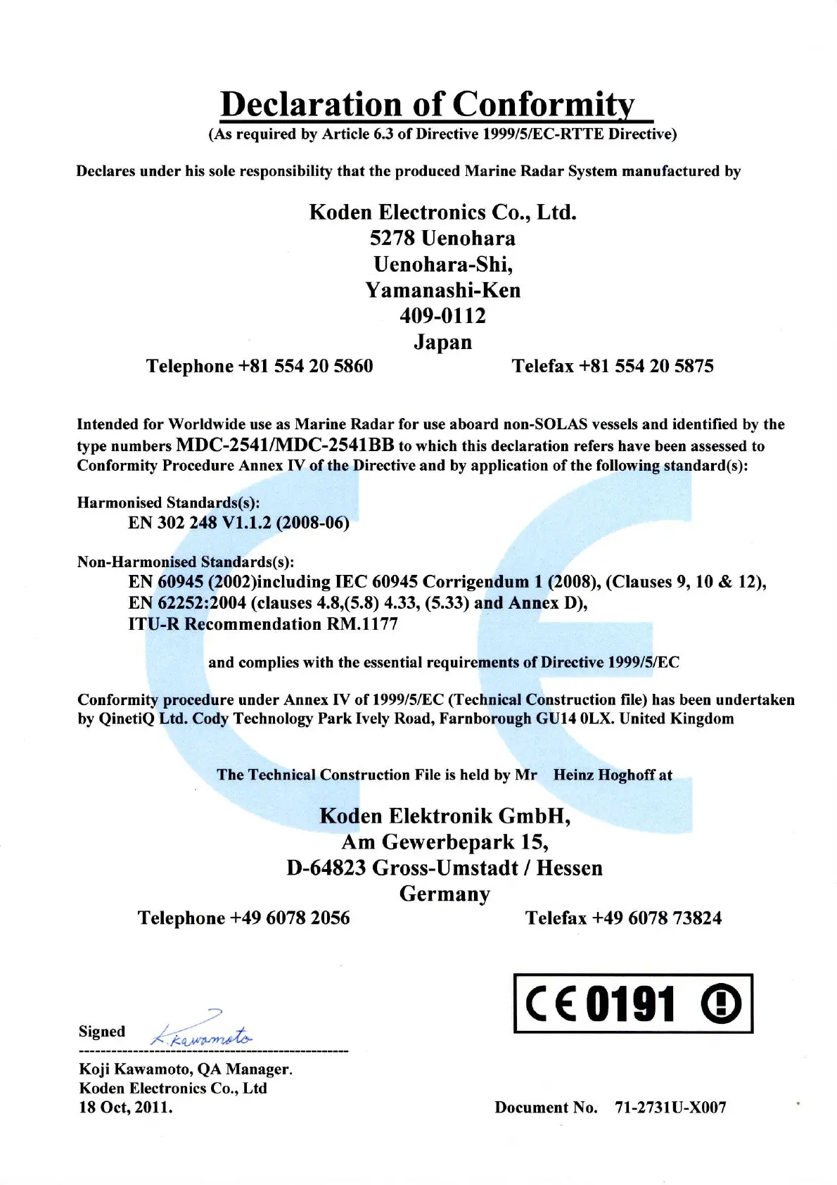 Other manuals for Koden MDC-2540