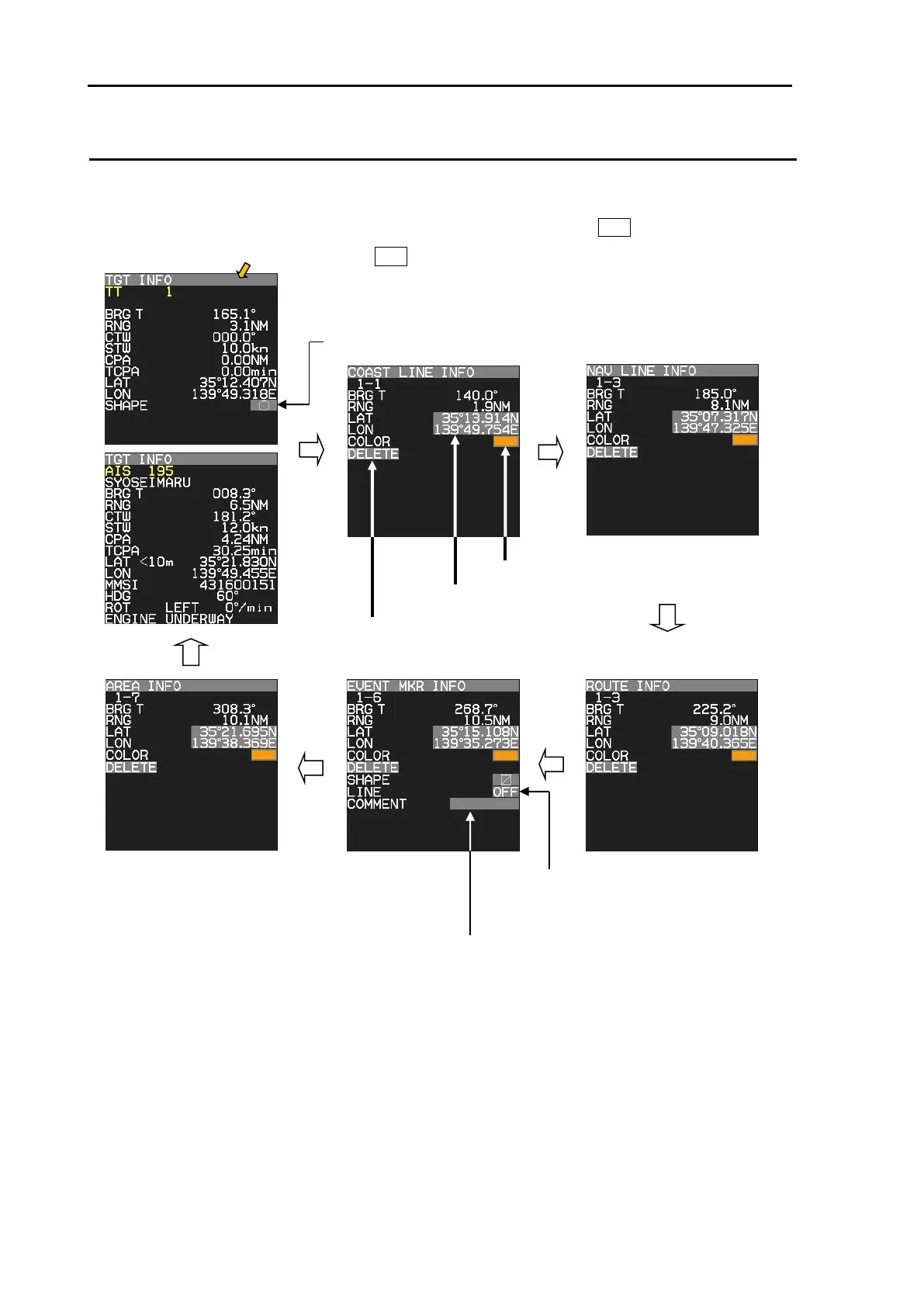 Selected AIS, TT or MAP (COAST LINE, NAV LINE, ROUTE, EVENT MKR and AREA) information is