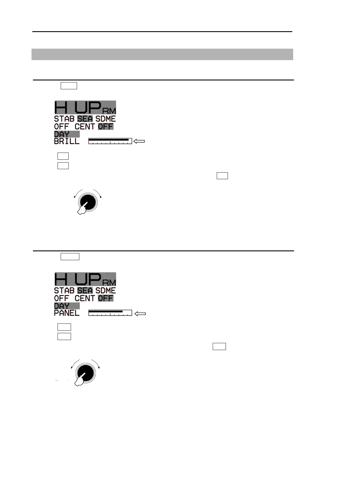 The display brilliance can also be changed in five steps by pressing EBL knob.