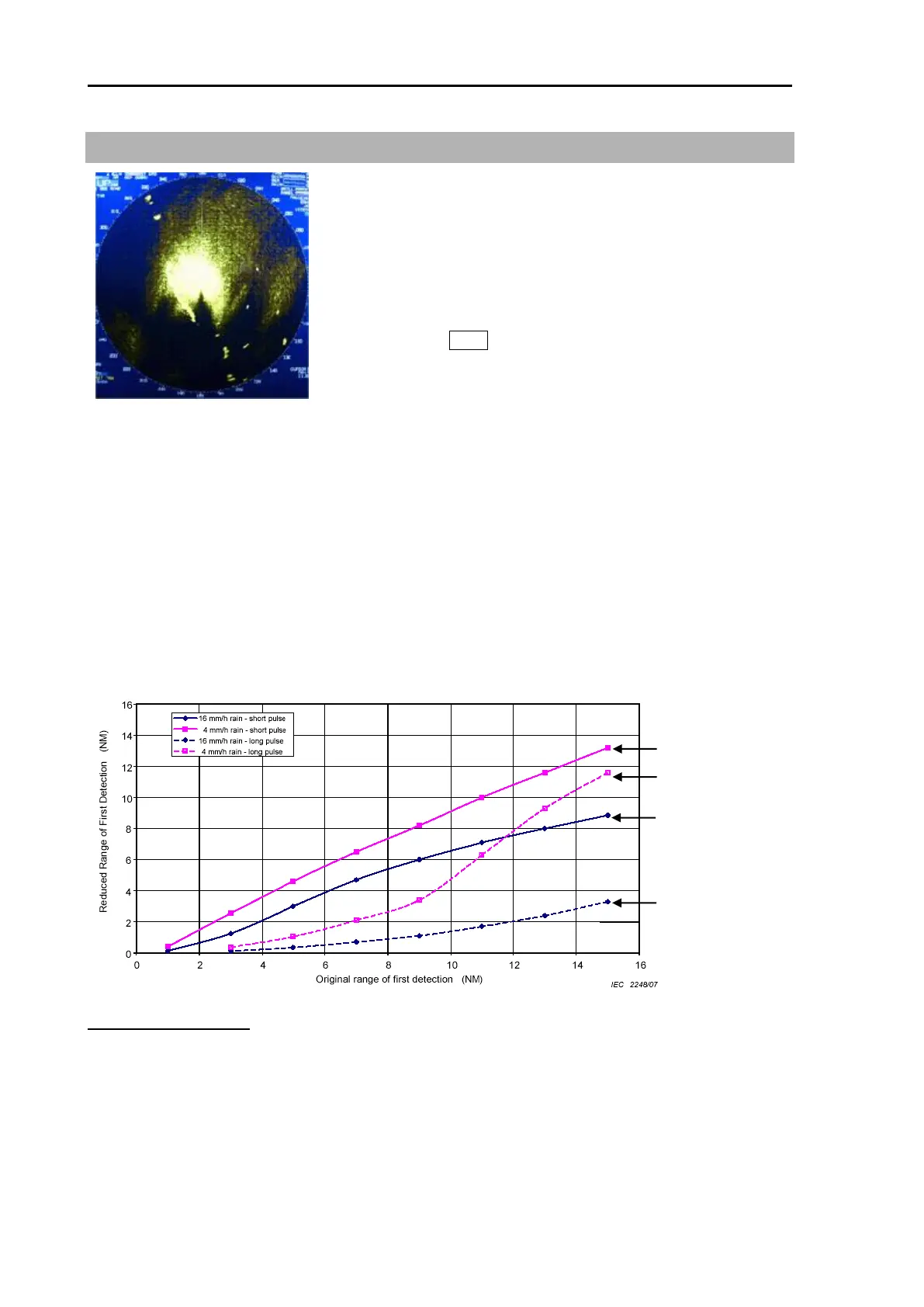 16 mm/h rain (short pulse): approx. 3.9 NM 16 mm/h rain (long pulse): approx. 0.5 NM
