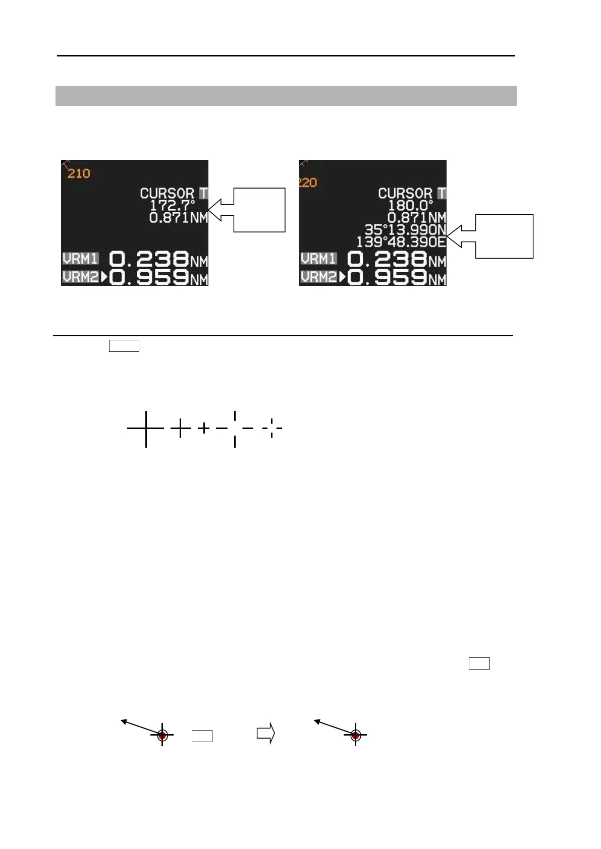 Cursor data is displayed in distance and bearing at lower right of the display. In addition, it can also be