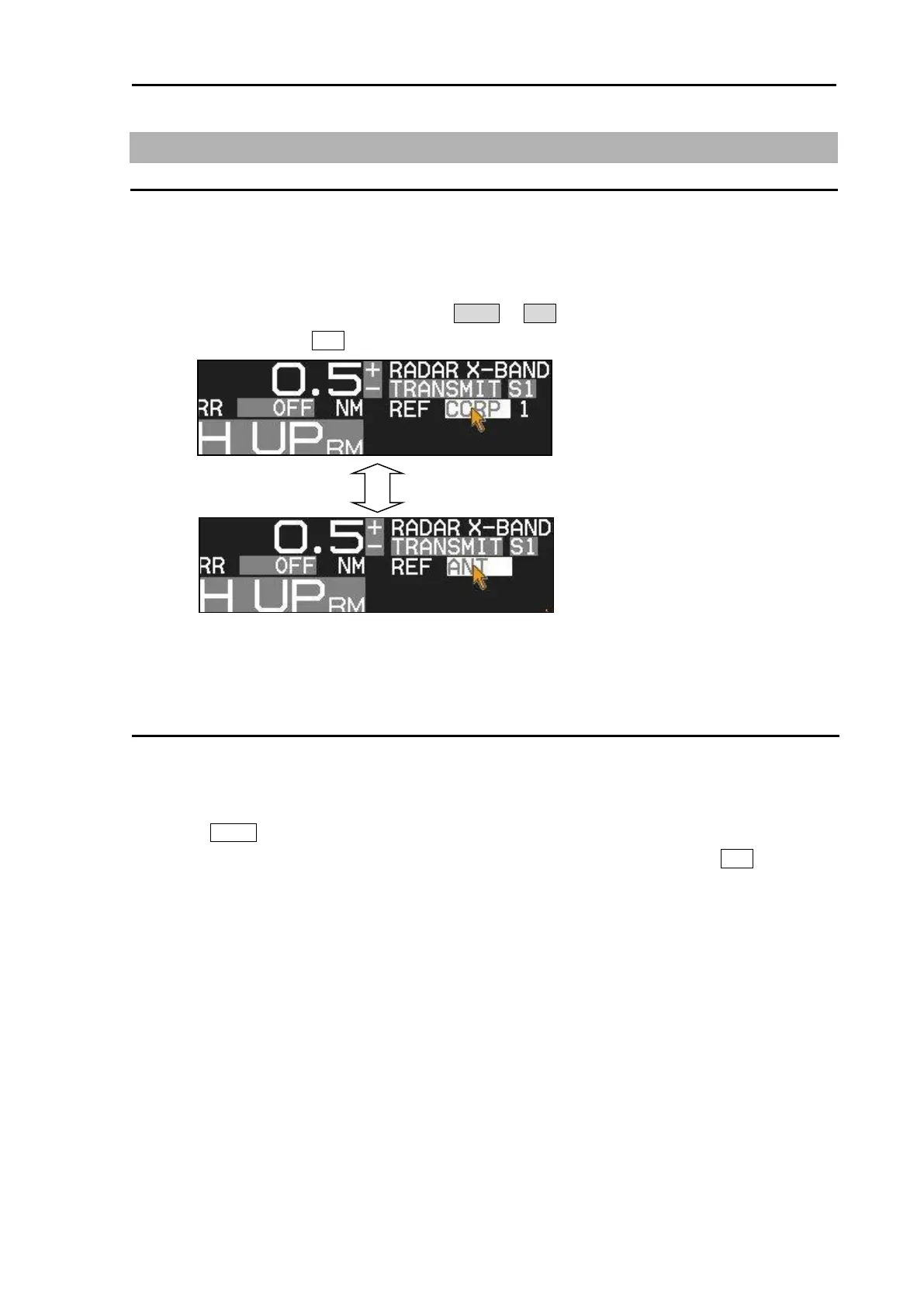 Select [DISPLAY] => [DISPLAY CENTER] => select [ANT] or [CCRP], and press ENT key.
