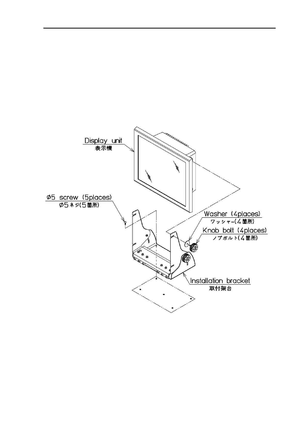 (1) Remove four knob bolts from which the Display unit is secured on the mounting bracket.