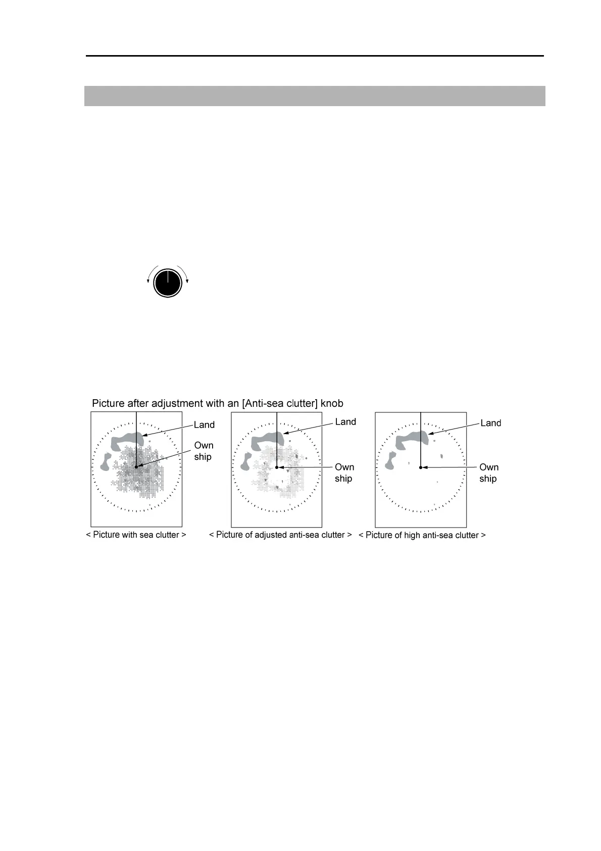 By using [SEA] knob, suppress this influence of anti-sea clutter and adjust it to make targets easier to