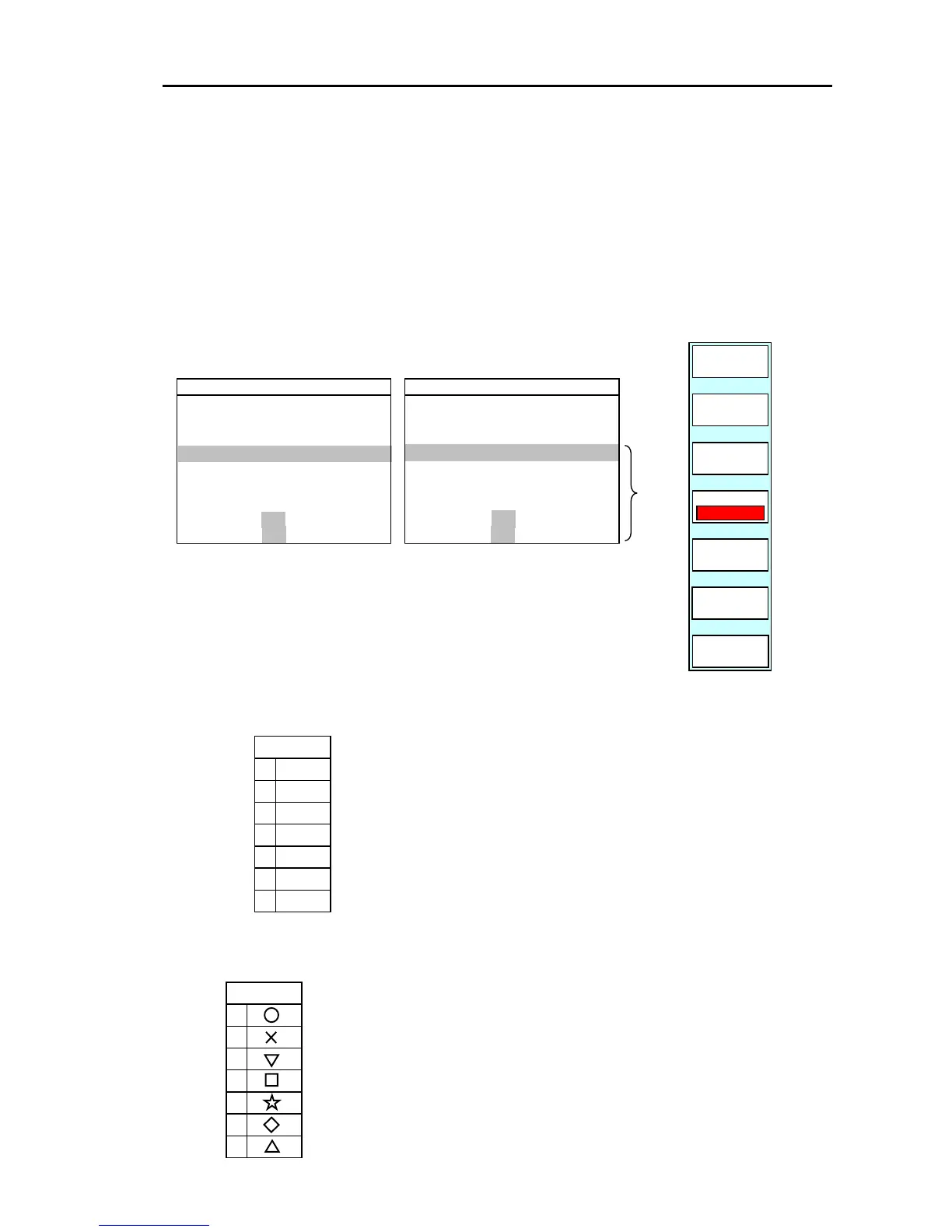 If the “SHAPE” key is pressed, the settings menu for the mark shape
