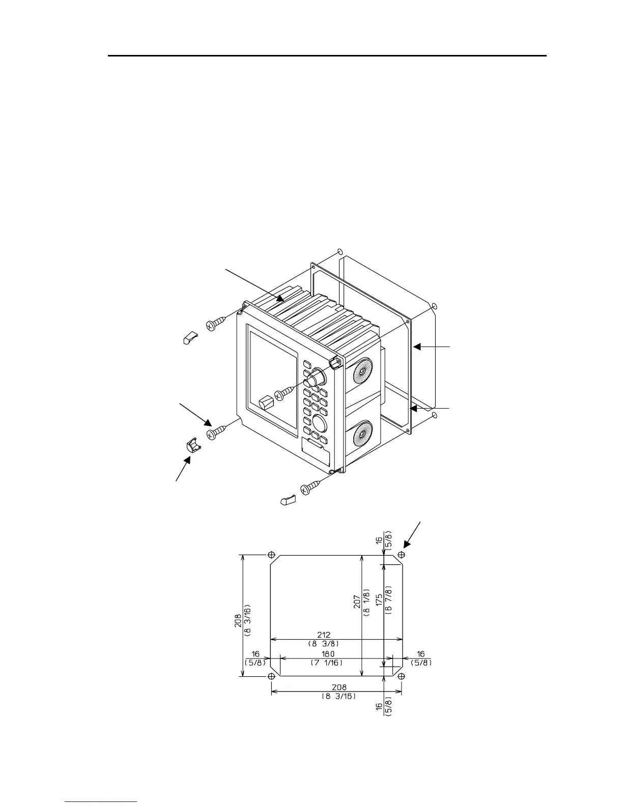 (4) Put the display on the opening and fix with four (4) tapping screws. In case you use M4 screws to