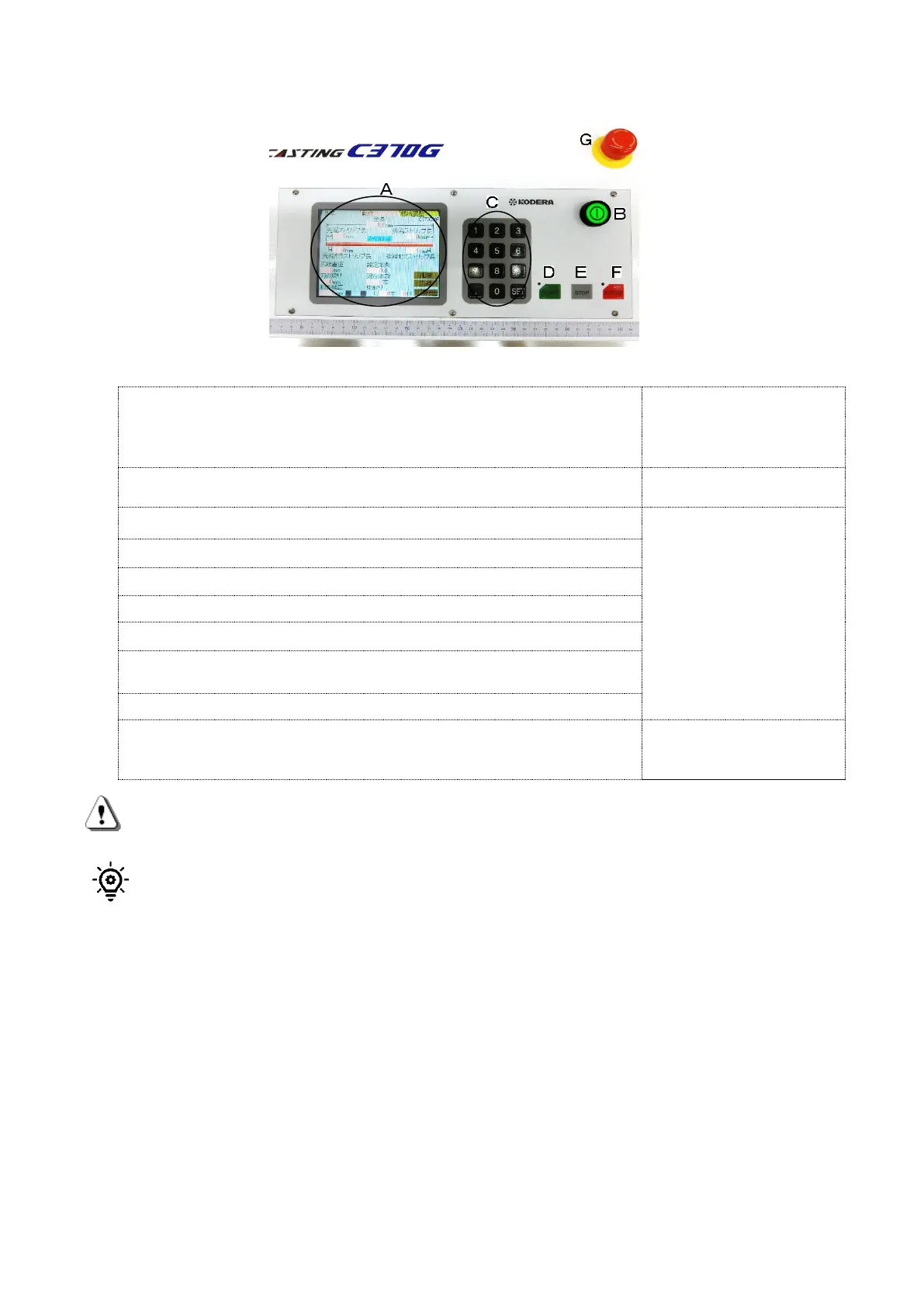 (G) [Emergent Shut Down Switch] will stop all the operations immediately, and indicate