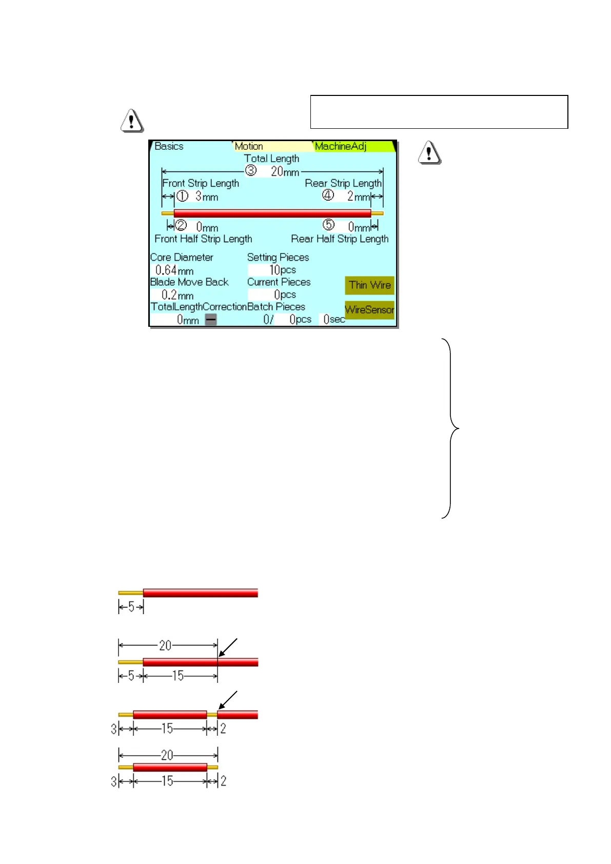 ④《Rear Strip Length》:Setting of the stripping length of the rear