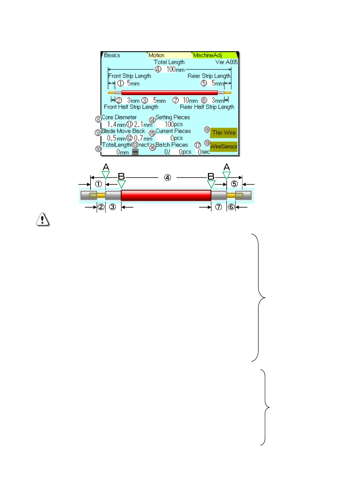 《Basics》 screen at 《Sheath Strip》(half stripping of core wire)