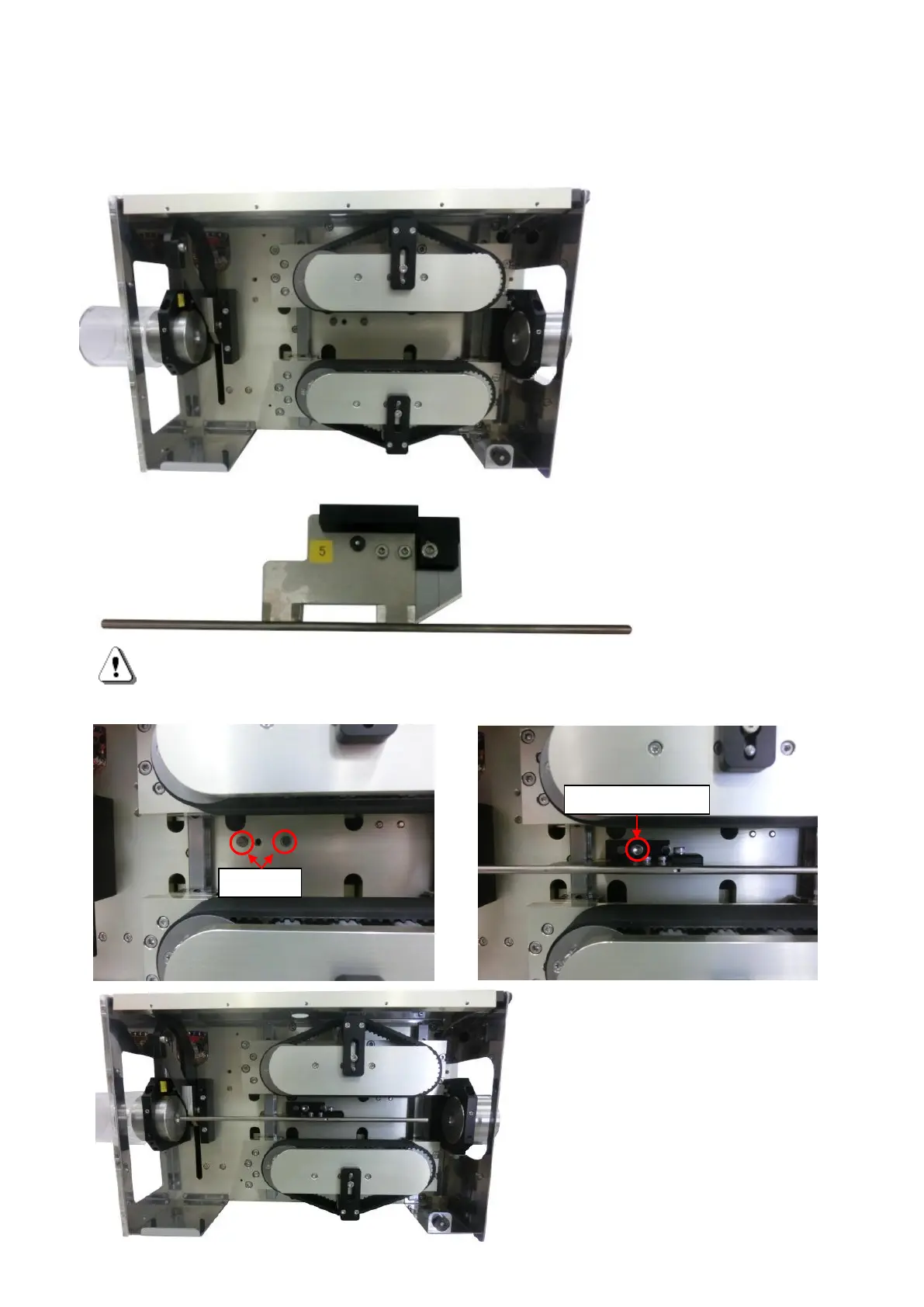 6. Attach the "Slit guide pipe" to the "Set pin" between the belts of the main body.