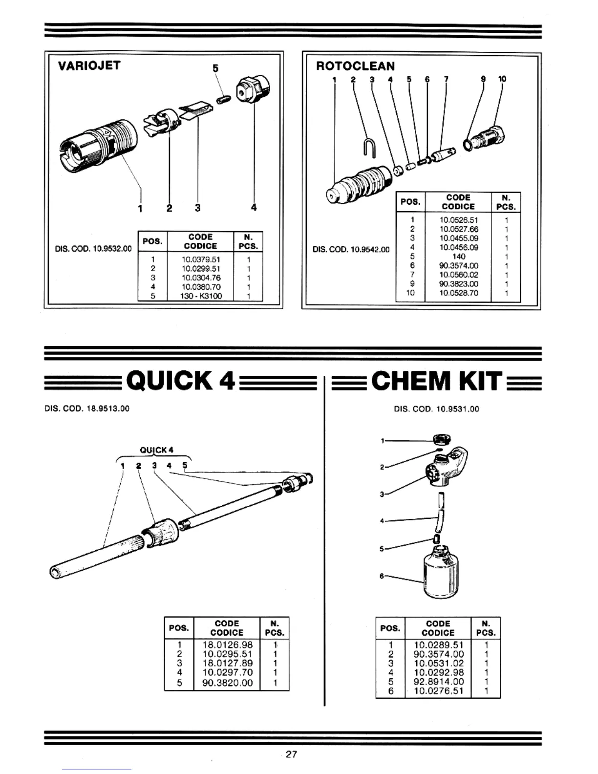Kodiak 4100 - Variojet Exploded Diagram; Rotoclean Exploded Diagram; Quick 4 Diagram; Chem Kit Diagram