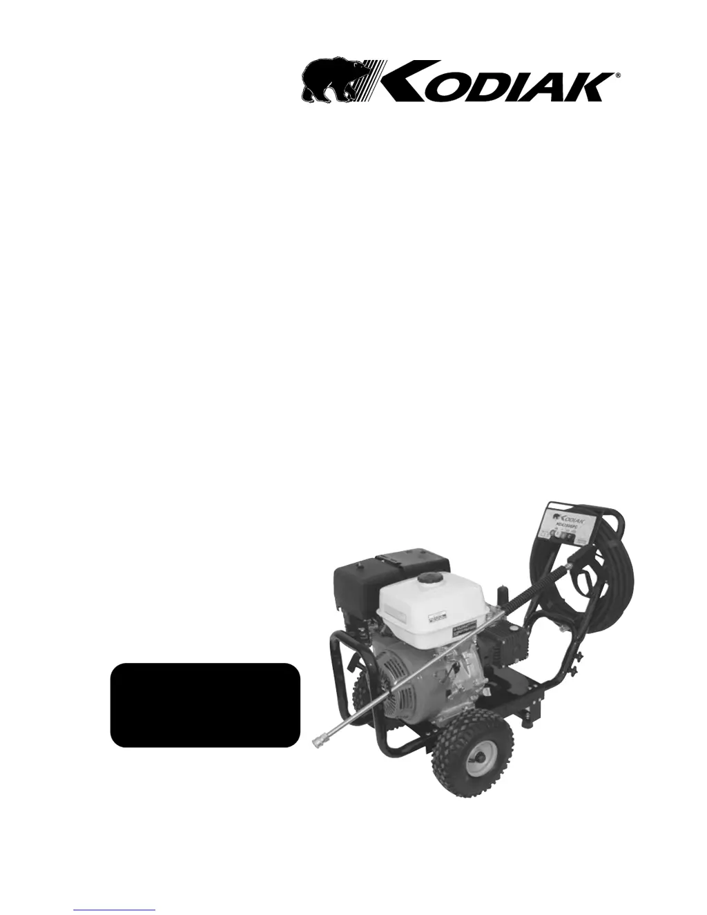 If your Kodiak Pressure Washer isn't delivering maximum pressure despite the engine running, start by checking the water supply. Ensure the water faucet is fully open and inspect the garden hose for any kinks, leaks, or blockages. Using a garden hose with a minimum diameter of 5/8" is recommended. Also, the water inlet screen or the nozzle may be clogged, so remove and clean them. Additionally, verify that the spray nozzle is set to the high-pressure position. If the unit was exposed to freezing temperatures, thaw it out completely, including the hose, gun, and wand.