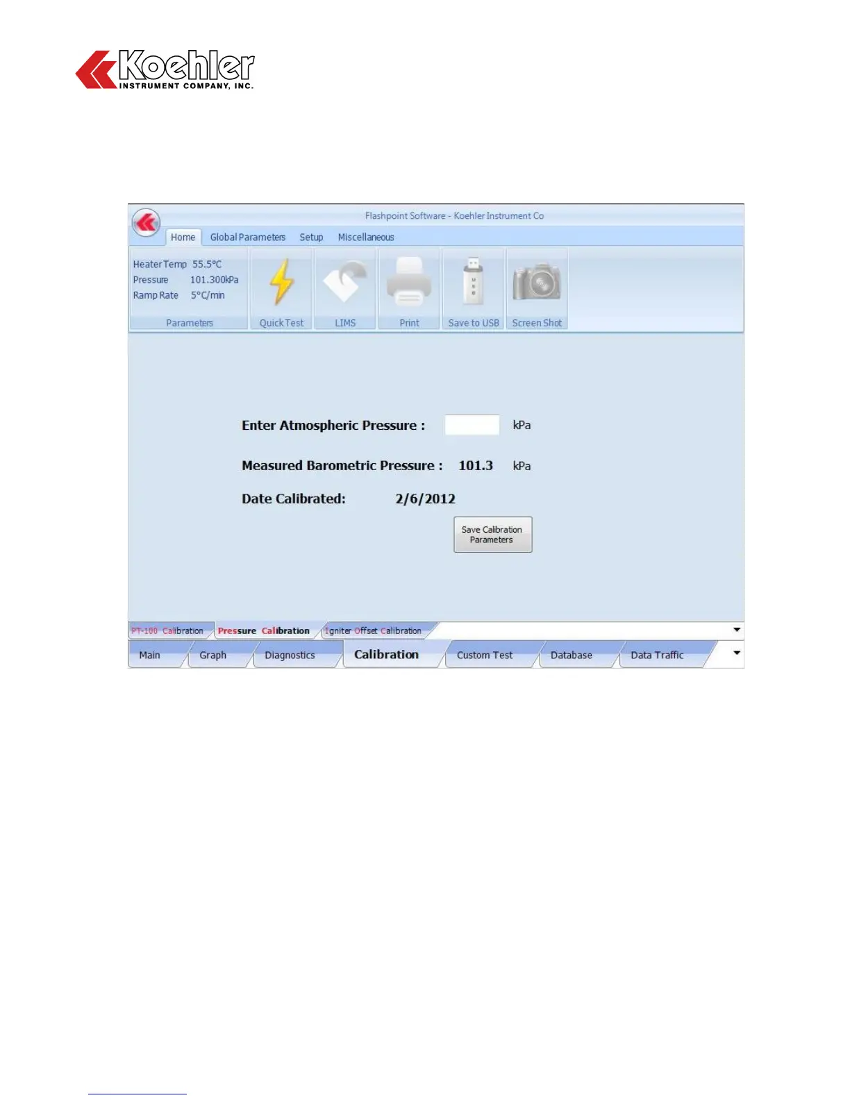 b. Pressure Calibration - The Flash Point Analyzer is equipped with an Atmospheric Barometric